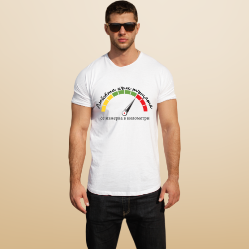 Мъжка Тениска с Надпис "Любовта към тъщата се измерва в км"