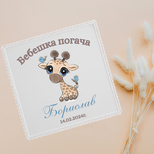 Персонализирано платче за погача с жирафче | Универсален месал за бебе – момче или момиче