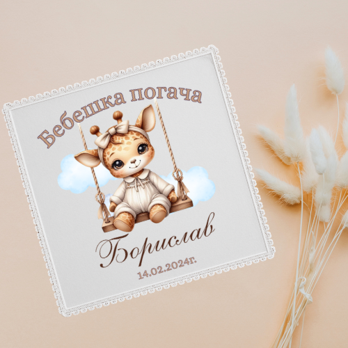 Персонализирано платче за погача с жирафче | Универсален месал за бебе – момче или момиче