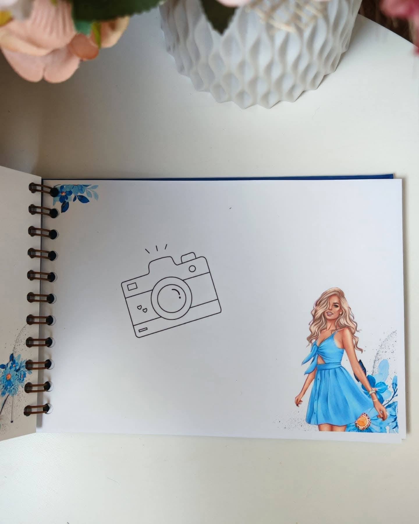 С красиво илюстрирана корица, представяща стилна дама сред цветя и деликатни птици, албумът пренася усещане за пролет, свобода и красота. Вътрешните страници следват същата линия – с нежен флорален дизайн, цветови акценти и място за снимки, послания и малки спомени.