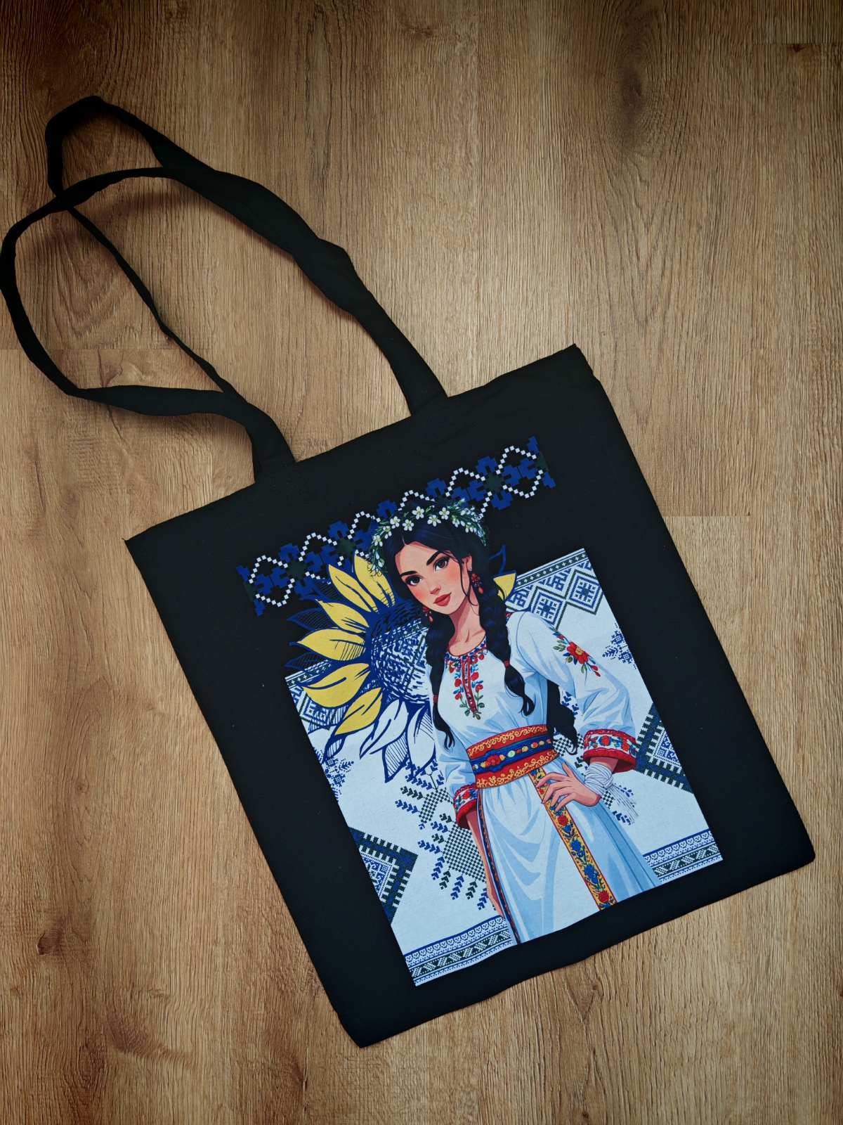 Тази стилна черна чанта носи духа на българската традиция и красота. С изящен дизайн на момиче в носия, тя е перфектна за хората, които обичат фолклора, народното изкуство и българската култура.